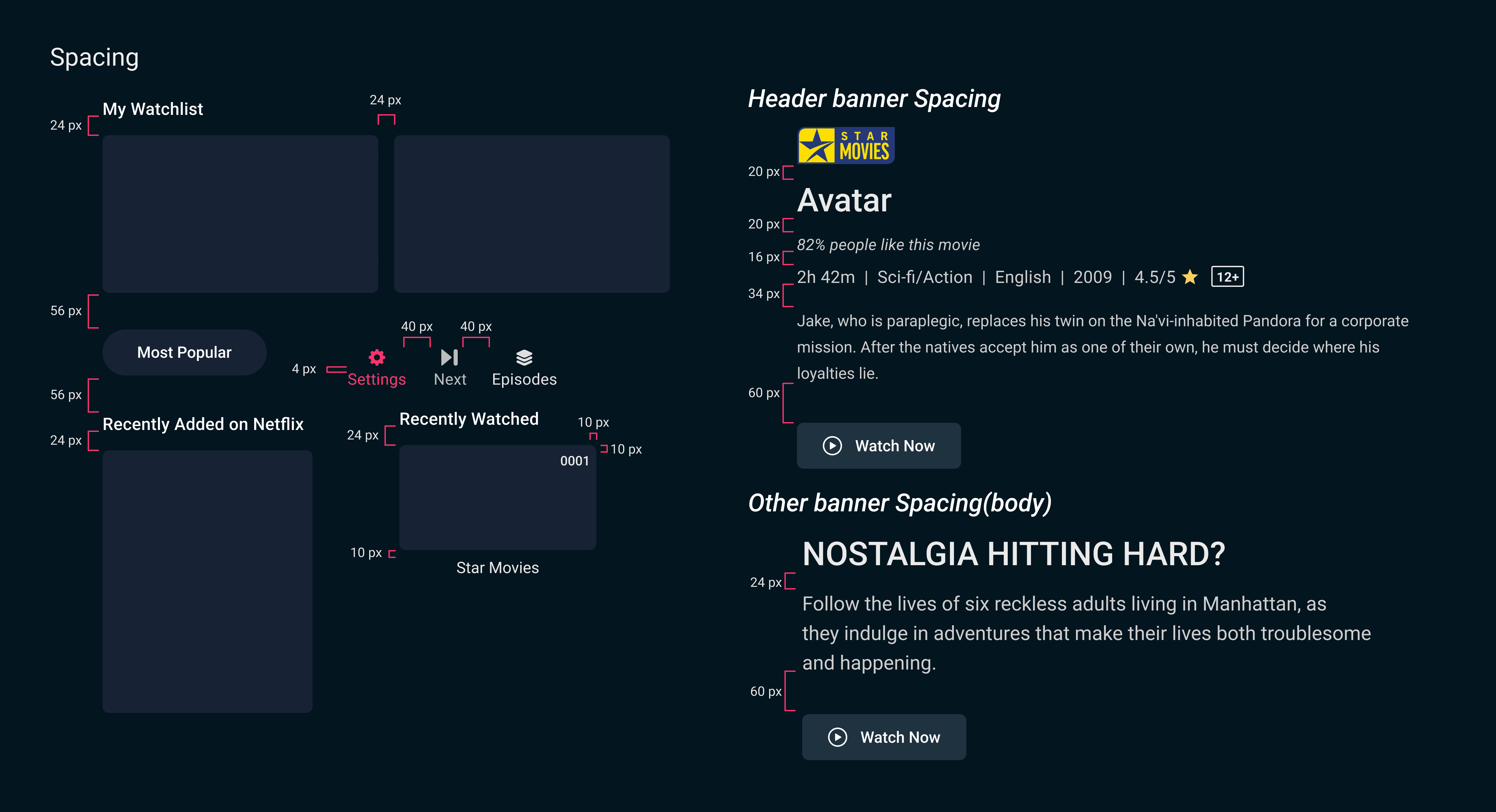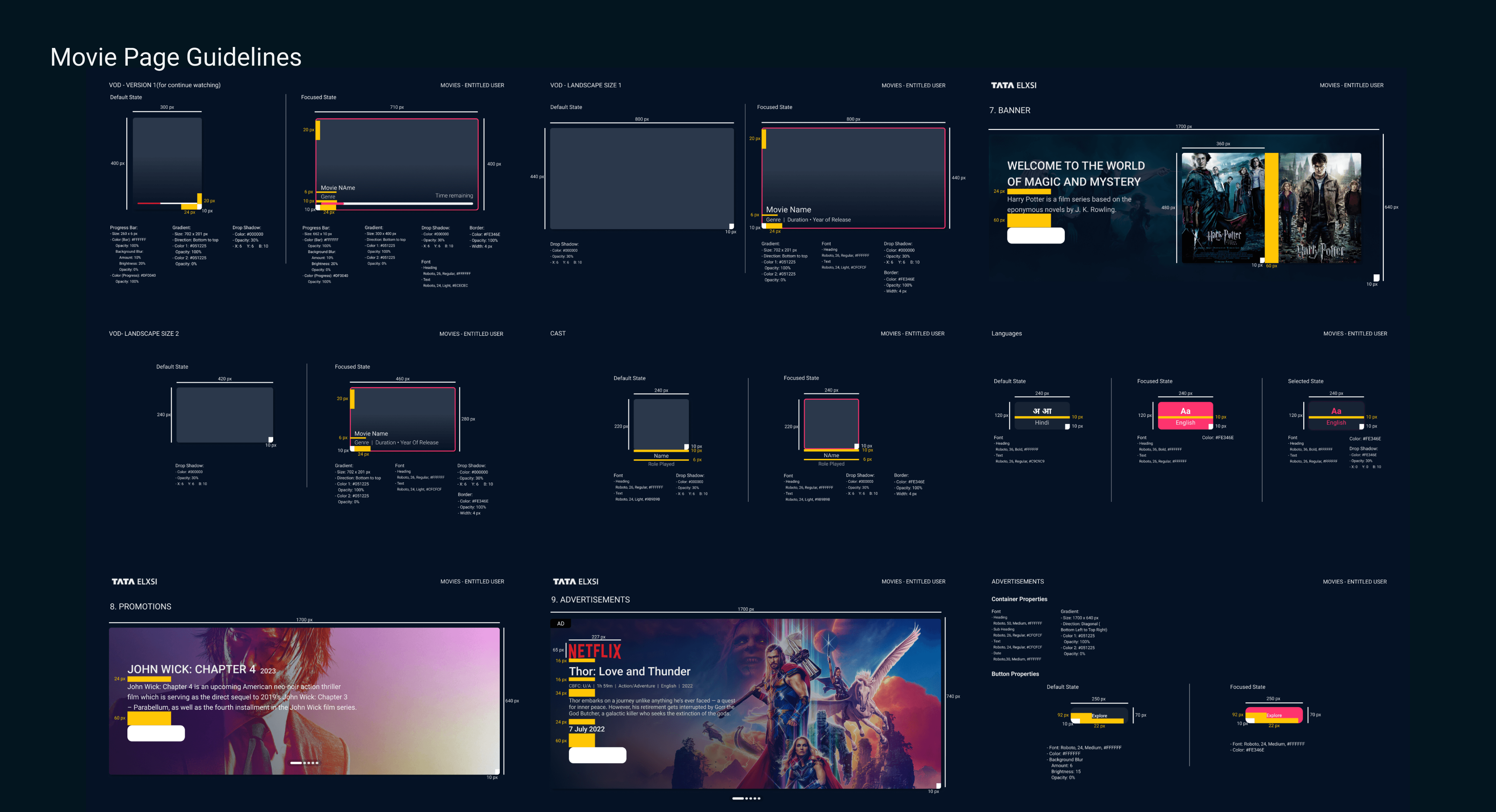 A shared component system built to support the full 8-section product, with Movies-specific components contributed as reusable primitives for the broader platform team.