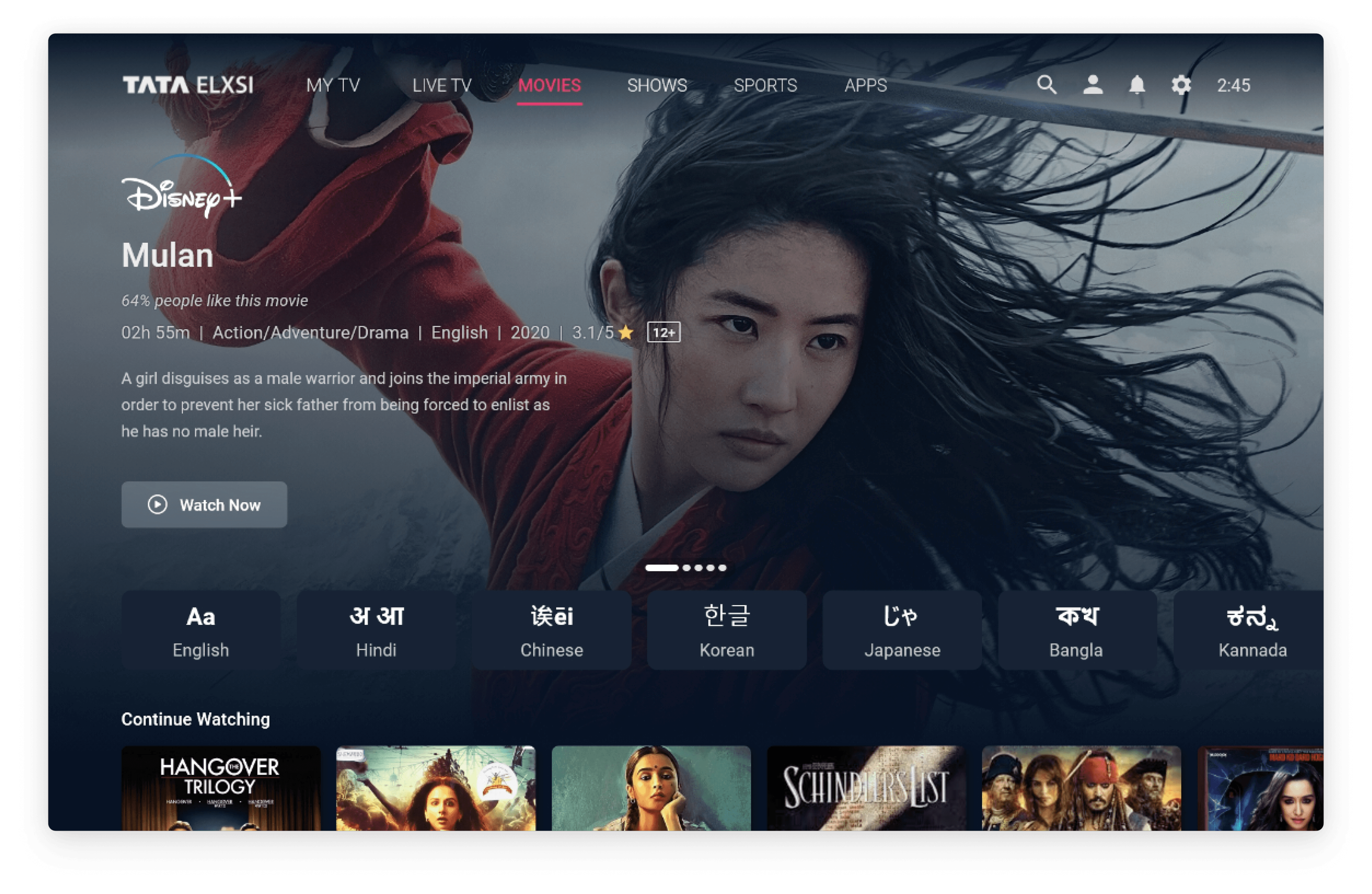 I designed the Movies experience within a white label Android TV launcher in aggregator model unifying 27+ OTT platforms, Live TV & Video on Demand(VOD), powering TATA Play’s global streaming Platform as a Service(PaaS) offering.