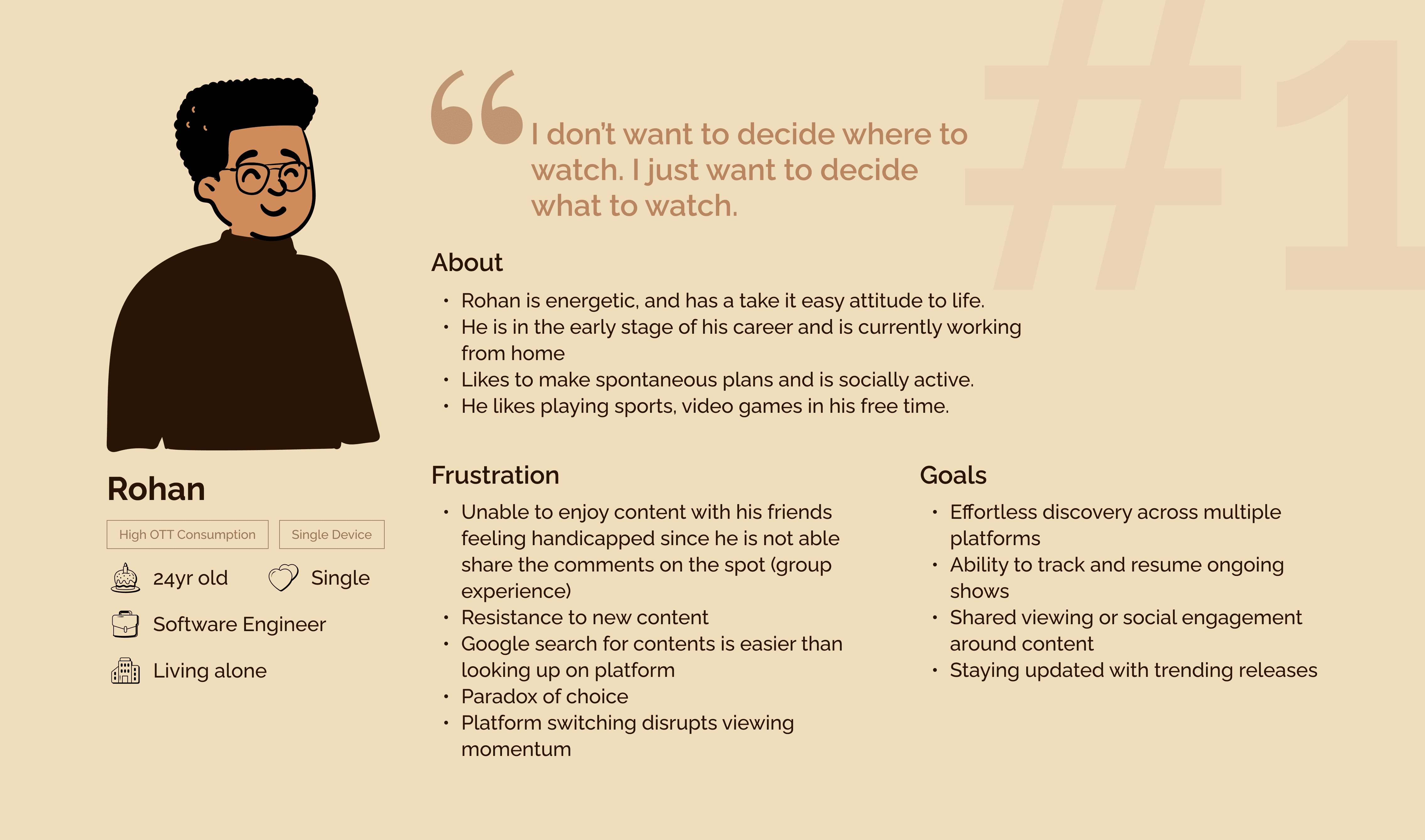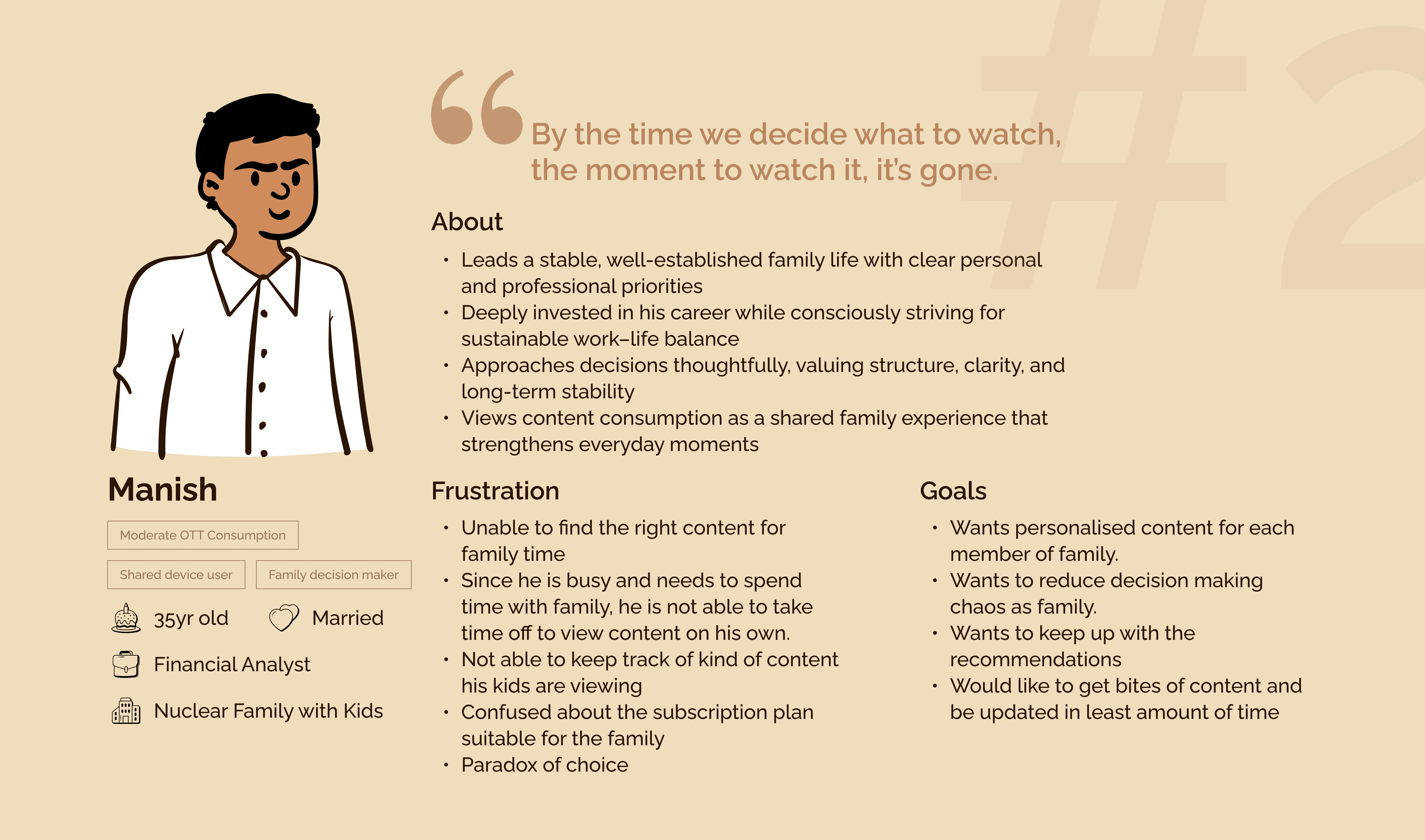 Both represent the core tension of the product: speed and simplicity for the individual vs. personalisation and safety for the family. Every design decision for the Movies section was tested against both.